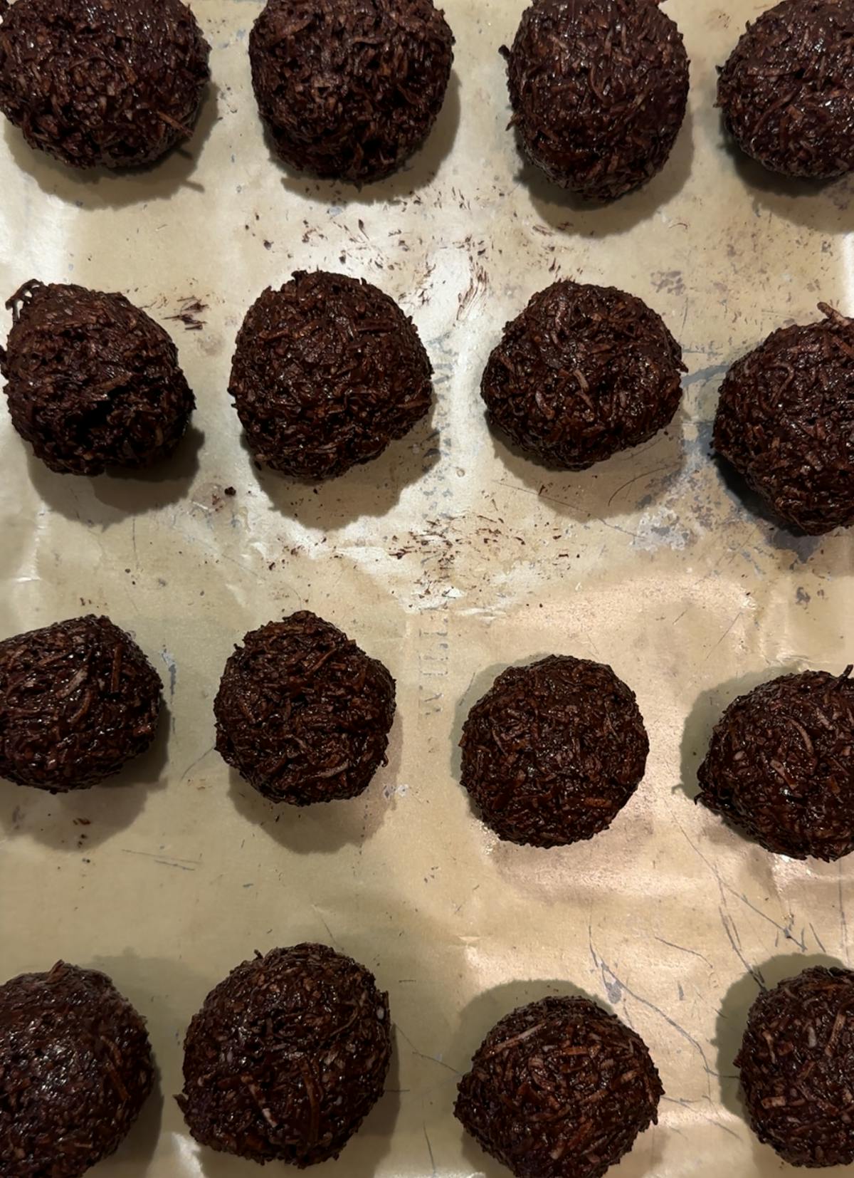 Using a small ice cream scoop, your hands, or a big TBS, spoon rounds of the dough onto dehydrator screens or a wax paper covered sheet pan. Dehydrate at 115 degrees for 12 to 24 hours, or until crisp on the outside and nice and chewy on the inside. Or heat for an hour on 150 in the oven. Enjoy!