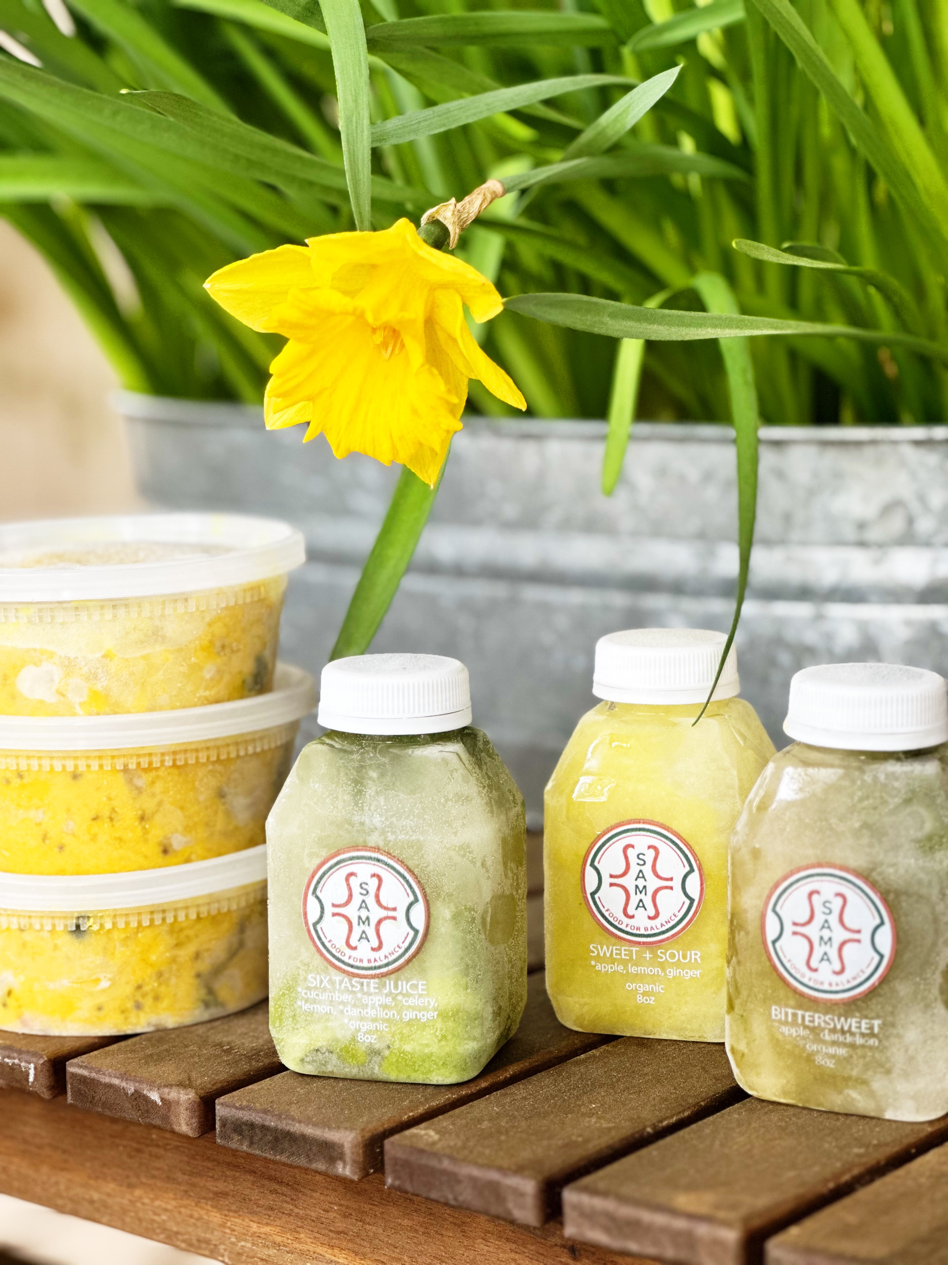 6. Declutter your physical space. Clean out the fridge and pantry and stock with healthy foods. Keep SAMA juices, soups, and smoothies on hand frozen for quick and easy, healthy options.